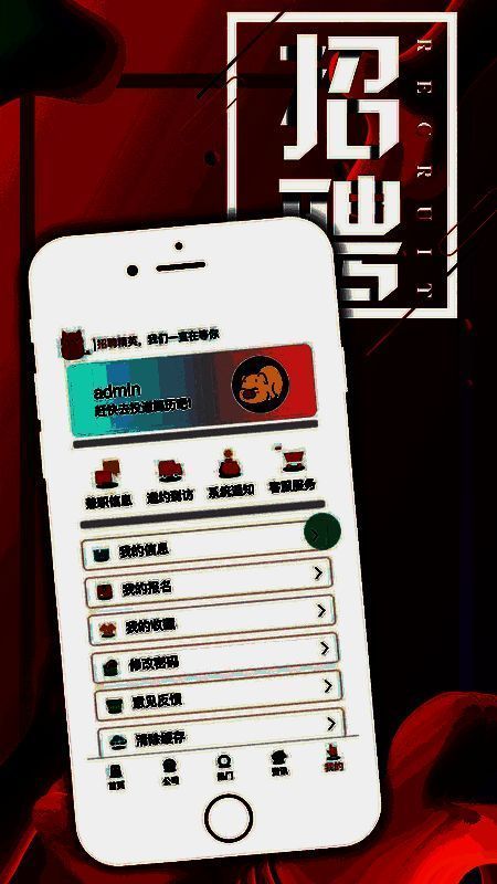 4、个人中心界面具备我的信息、报名和收藏查看、意见反馈、清除缓存、关于我们、登录注册、修改密码等功能。