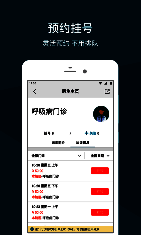- 能提前查看特定医生的出诊日程安排。