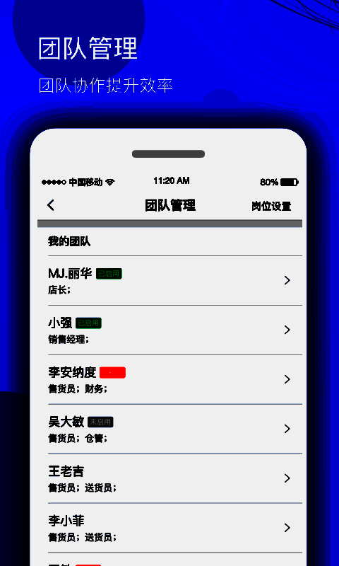 1、该应用支持团队合作,线上就能了解到团队成员的职位安排;