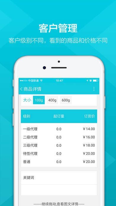 客户信息了如指掌,订货价,格灵活设置,支持分区分级,管理。管好客户,就这么简单