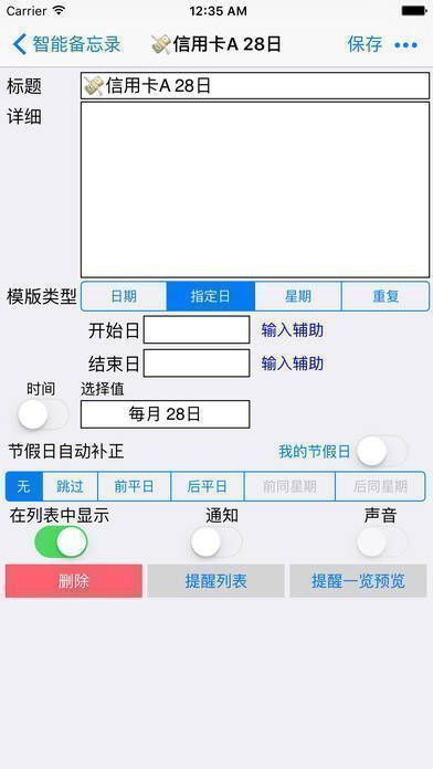 提供丰富的提醒模式,根据假日,自动调整生成提醒。