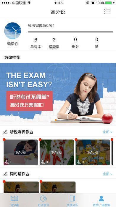 《高分说》是一款专为学生打造的英语学习软件。打开软件,随时随地都可以进行学习。不仅有笔试,更有听力和口语学习,让你拒绝哑巴英语和笼子英语,轻松学会英语,快速提分。