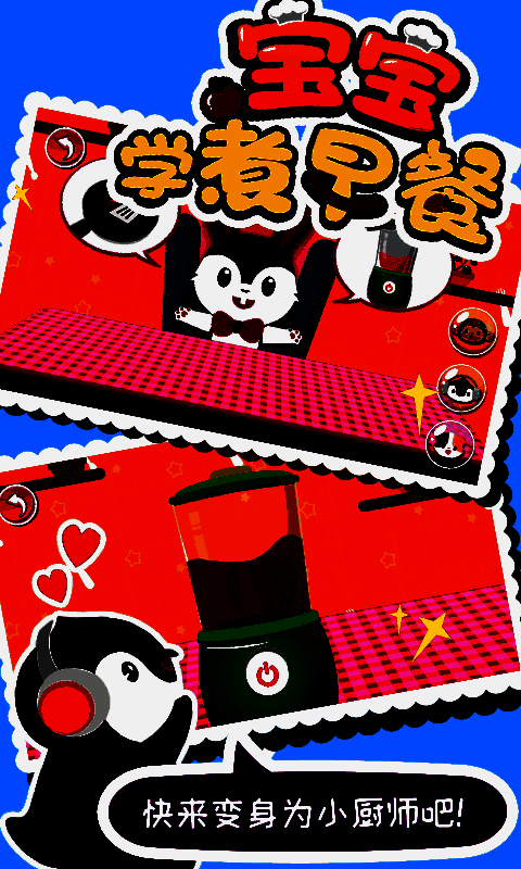 宝宝学煮早餐是一款幼儿智力启蒙应用,好玩的儿童学习早教应用,可以培养孩子的学习兴趣。该应用可以让宝宝体验到妈妈做的每一顿营养早餐,早餐丰富,包含咖啡、面包、甜点、干过和奶昔,多样的早餐奶形式,可以教会孩子营养搭配的方法;利用制作、装饰、来呈现出营养美味的早餐,多种组合形式,让宝宝感受到无限的乐趣和快乐;应用中使用语音播报形式,让孩子可以认清楚每一种材料的名称,以及其作用和特点,让孩子可以烹饪制作中,学习到跟多关于烹饪的技巧和方法。