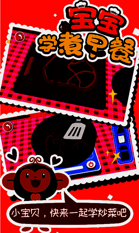 4、宝宝学煮早餐提供了丰富的颜色,可以让宝宝学习烹饪的同时,认识颜色。