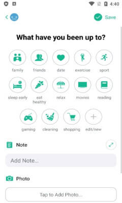 2、选好心情后,可添加活动编辑,也能自行新建;
