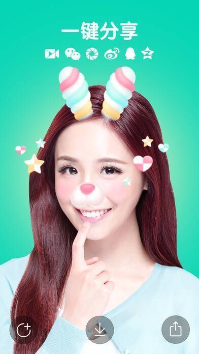 - 【炫酷贴纸】:拥有超过1000种动态贴纸,像鹿角、猫须、兔耳朵、腮红、熊掌、天使光圈等搞怪水印一应俱全。