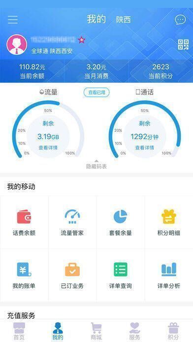 专属我的移动:支持账单详单、实时话费、流量使用、积分明细、套餐余量、已订业务、个人信息等查询与分析,信息准确清晰。
