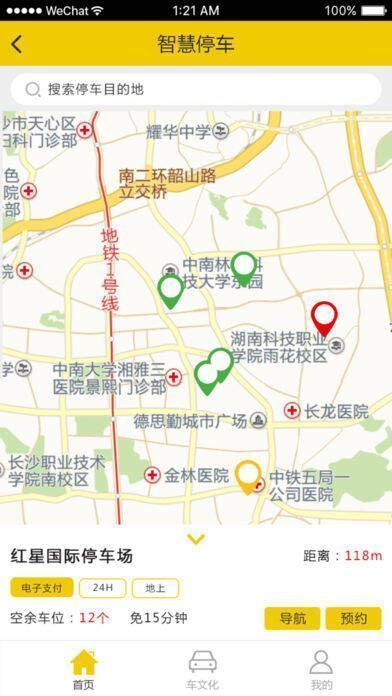运用大数据搜索附近实时空车位数量与价格,以不同颜色直观呈现空车位情况,绿色表示有空闲车位,红色表示车位已满;