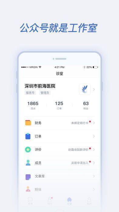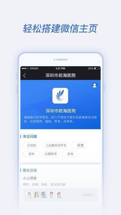 接入微信公众号:医生用公众号和患者沟通,通过微信关系链传播,赢得更多患者信任。
