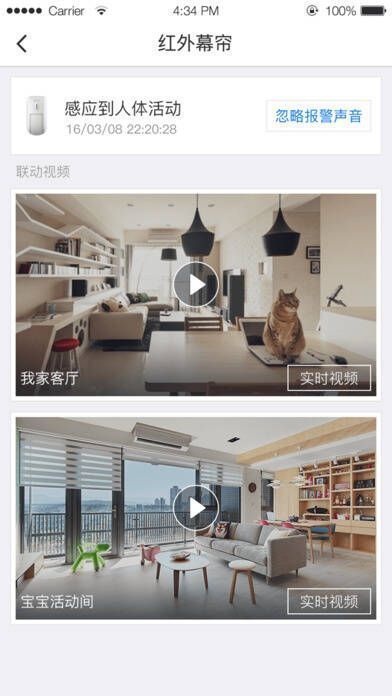 2、实时报警:搭配多种感应器,将特殊人体活动、异常环境等消息推送至手机,助用户及时察觉安全隐患。