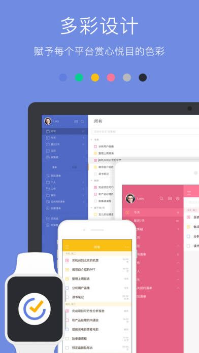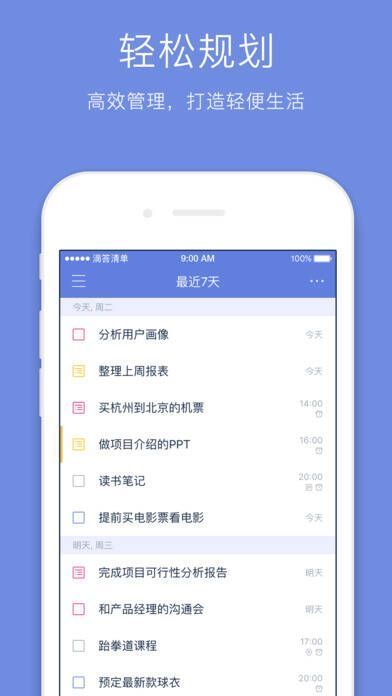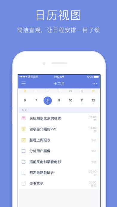 滴答清单是一款轻便的待办事项(Todo)及日程管理(GTD)应用,拥有百万用户。它能协助制定工作计划、设置会议提醒、安排行程规划以及整理购物清单,集计划表、备忘录、日程清单、笔记、便签、闹钟、日历、在线协作等多种实用功能于一体,是高效办公、目标管理和便捷生活的好帮手。