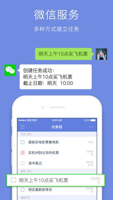 10. 微信公众号:将聊天内容或需收藏的网页发送到「滴答清单」微信公众号,可快速创建任务,随时随地进行日程管理和知识储备。