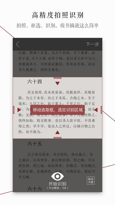 1、拍照自动识别书摘,alt属性:拍照自动识别书摘功能示意
