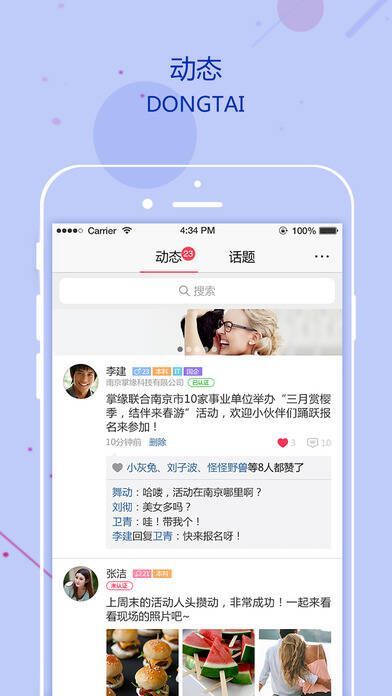 6、注册用户需经过本单位实名认证,单位之间还可互相邀请组织各类联谊活动。