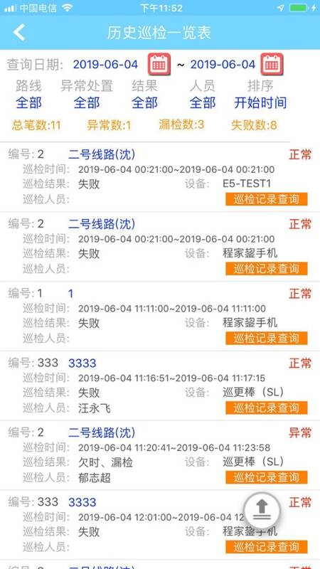4、具备部门、人员、路线、点、计划、任务、检查项、评分、定位、轨迹、查询、统计等齐全功能。