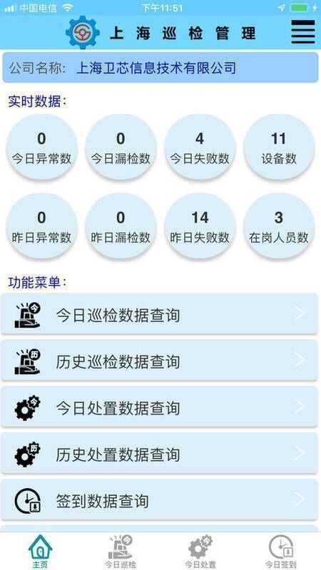 5、实时获取相关单位巡检人员的签到和签退记录。