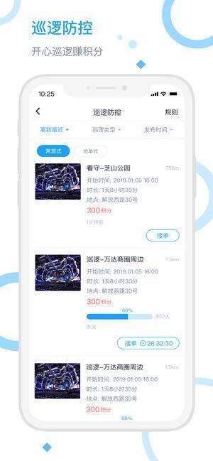 1. 巡逻防控:传统巡逻防控多由公安民警内部执行,而在“星城园丁”APP平台,大家可在“巡逻防控”模块领取任务,完成巡逻获取积分。