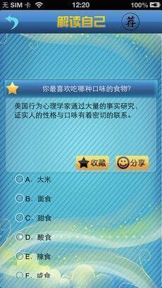想了解你与未来恋人是否情投意合、职场竞争力如何、人际交往是否受欢迎、恋人是否忠心、自己是否难以控制情绪、钱途在哪以及性观念开放或保守吗?《心理测试大全测试王》会为你揭晓所有答案,赶快下载,做个慧眼识己、锐眼识人的赢家!