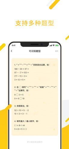 小猿口算能通过拍照检查口算题,1 秒即可得出结果,助力老师和家长更高效地检查孩子作业,支持四则混合运算、比较大小、带余数除法等多种题型。