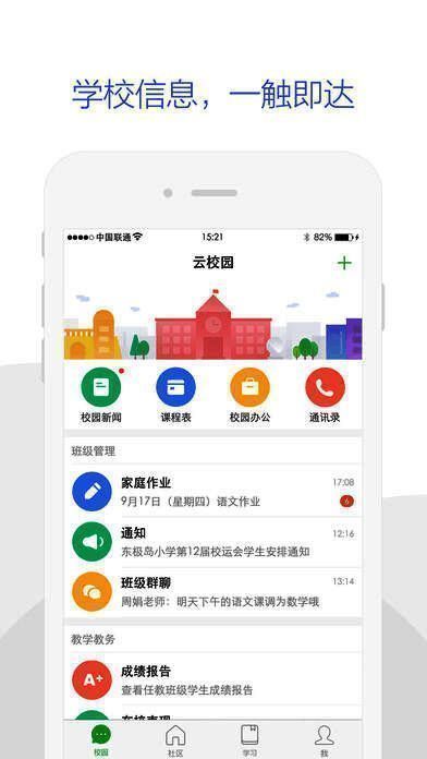老师发送的学生作业、通知、在校表现等消息,家长和学生可在APP内即时查看。