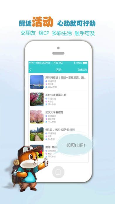 3、活动:能发现、加入、创建活动,实时互动,还可进行群组位置追踪。大家一起吃喝玩乐更有滋味,让活动成为传统。