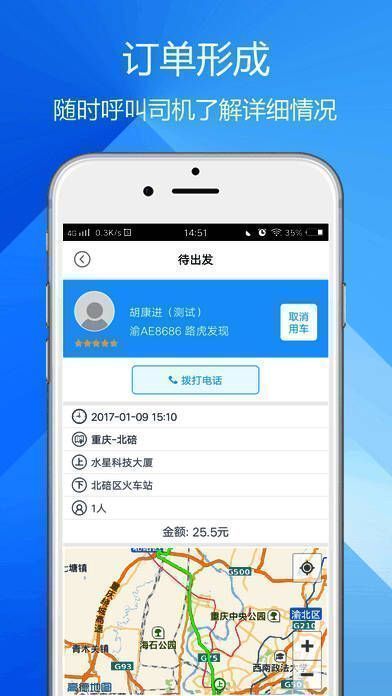 可通过手机下单、预约车辆,还能查看司机位置。