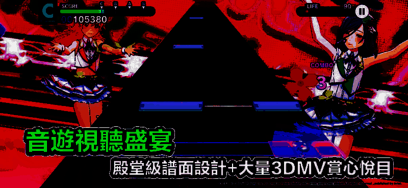 具备不拘一格的按键宽度、精确的谱面判定以及交叉的长条状音符。