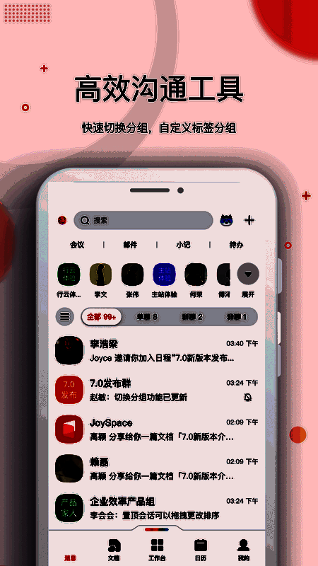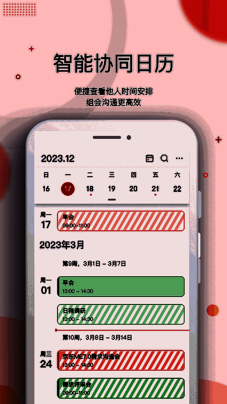 1、全面的日程管理体系:既能设置个人日程安排,又能同步团队活动,确保所有成员及时掌握最新的会议或任务变动情况。