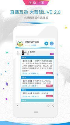 4、《大蓝鲸》是江苏人民广播电台独家定制的多媒体互动平台。发布信息秉承媒体公信力,对于发布虚假、色情、反动等不法信息分子采取一票否决制度。