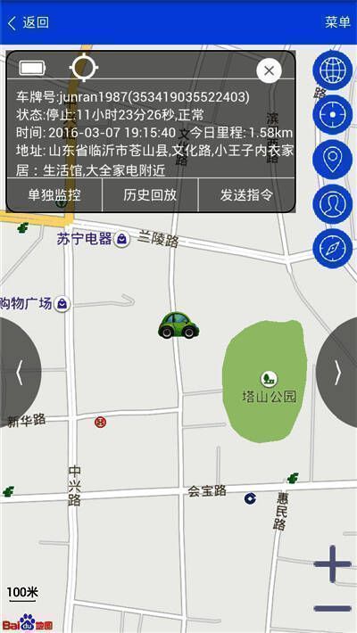 可查看车辆列表,对单车进行实时跟踪,回放历史轨迹,进行逆地址查询,还能通过不同图标直观显示不同车辆状态。