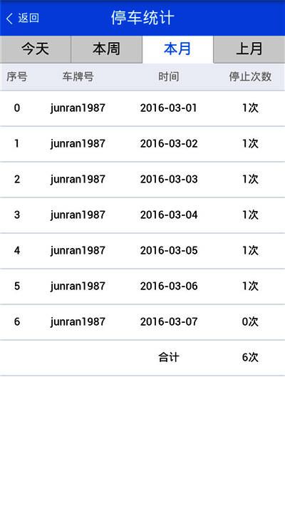 3、报表统计:能展示一段时间内的里程统计图、轨迹明细和报警明细等。