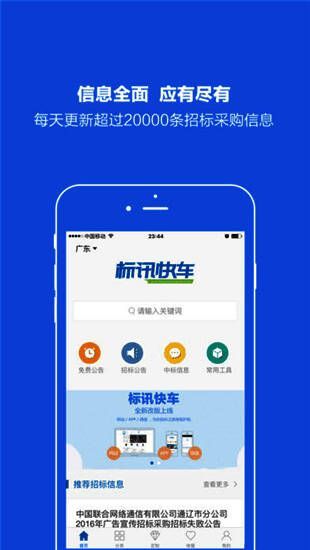 《标讯快车》——你专属的招标采购得力助手!它能为你提供海量招标采购资源,让你随时随地浏览全国招标采购信息。这是中国比地招标网旗下的移动端应用,作为招投标信息服务平台,汇聚全国各类招标采购信息,还能依据企业资质定制项目信息,提高工作效率。