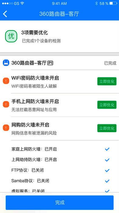 3、安全一键体检:对接入设备进行安全检测,多重防护让你安心上网。