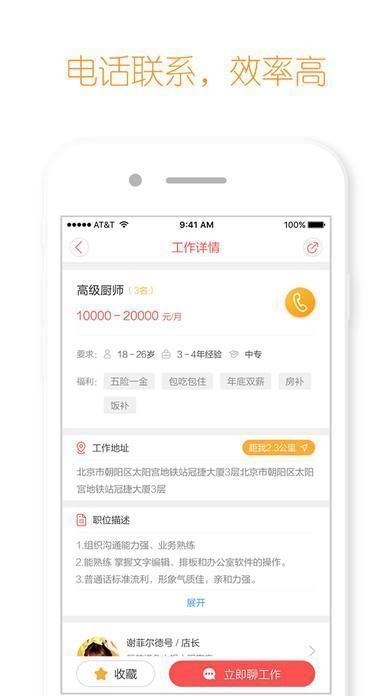 【电话联系,高效求职】可直接拨打电话与招聘方沟通,大大提高求职效率。
