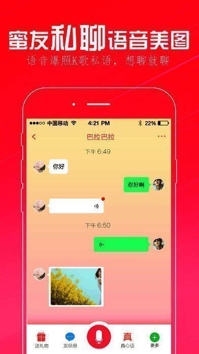 3、【在线畅快聊天】支持视频语音在线,聊天交友就像面对面一样,汇聚了千万真实美女,人美声甜,给你和女神零距离接触的机会;