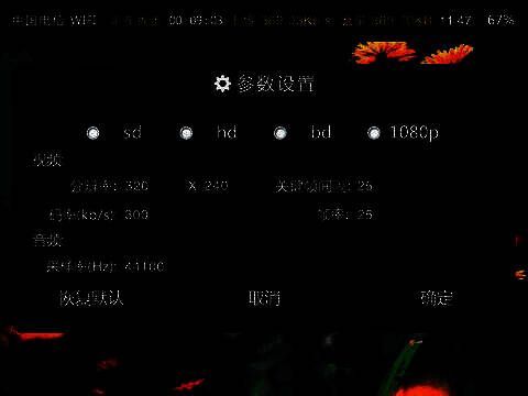 5、视频采用H.264编码,画面大小、帧率、码率、质量、关键帧间隔均可调节。