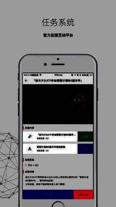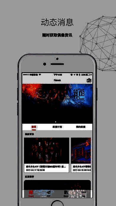 【动态消息】随时获取「心动偶像」资讯,演出资讯、艺人行程日历、活动图文报道等官方消息一手掌握,为粉丝提供优质消息服务。【任务系统】作为官方应援互动平台,ATF的活动、福利及官方通知预先发布,参与应援可获丰厚积分和官方福利。【在线音乐】全面提供音乐和影像,高品质视听享受,ATF歌曲和MV作品应有尽有,是整合ATF优质资源的视听平台。【周边商城】作为官方指定商品销售平台,ATF的唱片、周边及官方票务等商品优先发售,还有官方限定商品,服务体验良好,值得期待。