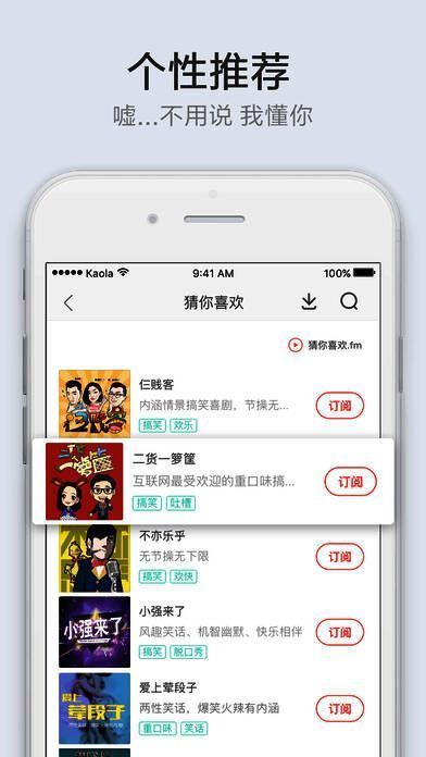 与传统网络电台不同,考拉FM以录制音频形式提供多频道内容,丰富且实时更新,避免节目重复。操作体验简单,令人耳目一新。