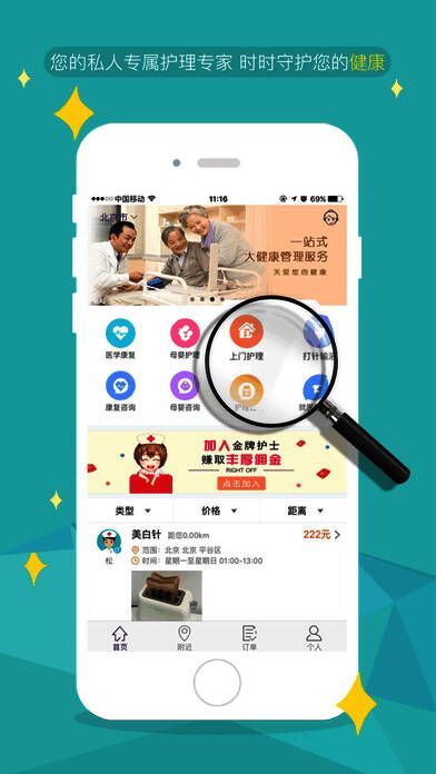 专业护士会通过线上接单、线下服务的模式,为您提供高效的护理服务。