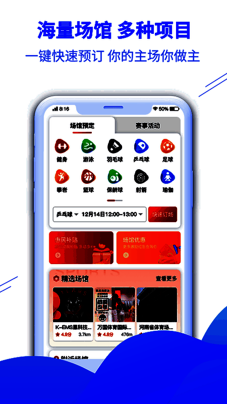 3. 带来超多优惠补贴福利,预订场馆更省钱,丰富活动等你来体验。