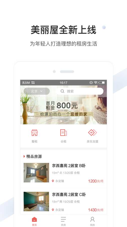 1、经济快捷租房体验:真实房源、零中介费、租金可月付。