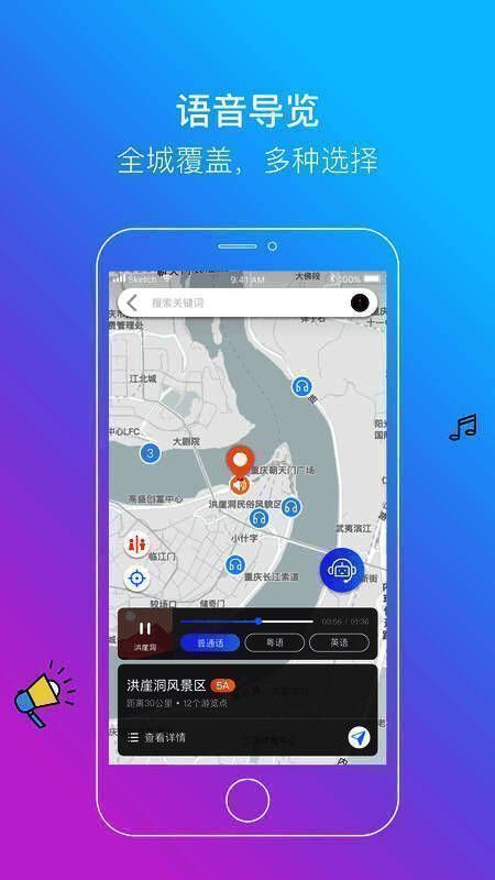 2、语音导览:运用人工智能声纹合成技术,覆盖重庆全城景区,让你在欣赏风景的同时倾听古今故事。