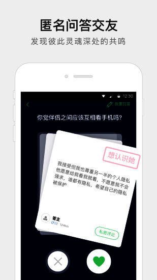 【匿名聊天】除实名制社交,还有匿名聊天功能,让你在朋友不知身份的情况下畅聊。