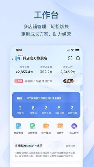 抖音小店苹果手机版是专为Tiktok商店打造的便捷办公工具。用户能按需灵活挑选功能,高效处理各项业务。它不仅提供全面的移动办公空间,还能直接查看各类信息,助力企业轻松管理店铺。作为抖音电商的得力助手,它集选品、搬运配送、数据分析等功能于一体,适用于抖音门店在抖音盒、巨量引擎、巨量千川等平台开展门店运营、商品管理和选品分析。依据供应商、抖音商家、网红等不同角色需求,提供端到端的产品数据服务,并通过智能算法推荐潜在爆款产品。