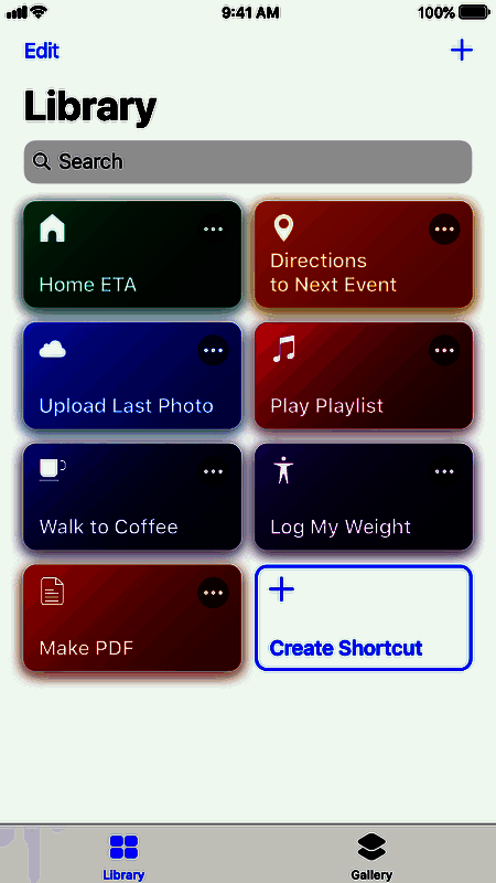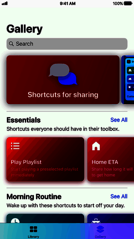 “捷径”包含 300 多个内建操作,能和众多你喜欢的应用配合使用,像“通讯录”“日历”“地图”“音乐”“照片”“相机”“提醒事项”、Safari 浏览器和“健康”,以及任何支持 Siri 捷径的应用。
