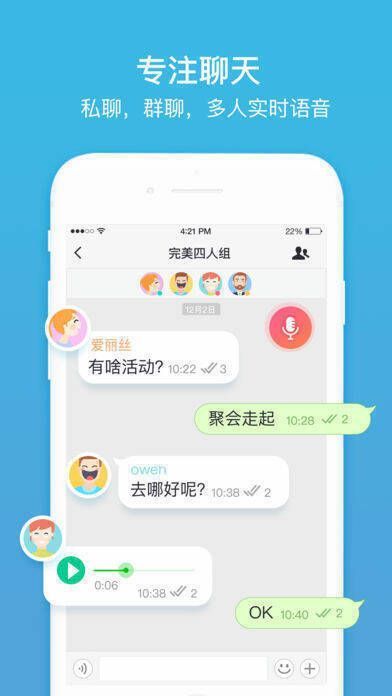 1、基于通讯录的好友体系:无需申请添加好友,也无需等待通过,打开聊呗就能和手机通讯录里的联系人直接聊天,沟通更加高效。