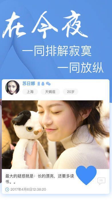 夜晚独眠于大床,寂寞难耐?快来91同城约,与帅哥靓妹轻松约会、畅快聊天,结识更多人,告别费力的求约恋爱,让电波连接彼此。
