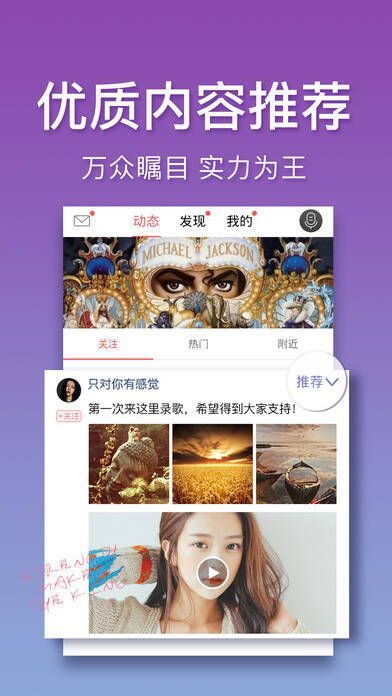3、勇敢展示自我,秀出独特个性:爱唱歌、爱出彩、爱分享的你,可借助全新个人音乐平台真实发声,唱出态度,秀出个性。