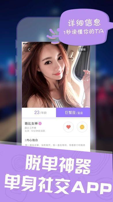 它拥有史上私密、真实、刺激、有趣又快速的交友方式!秘密聊天、同城联谊、情趣约会、激情见面,让你告别单身寂寞!
