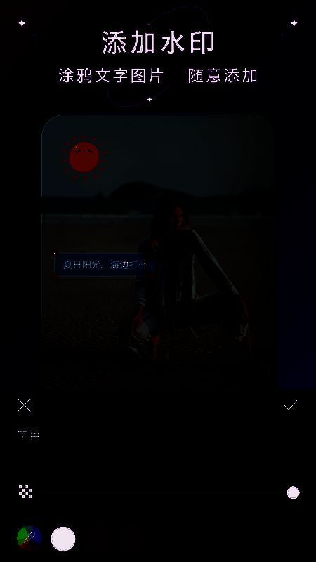 1. 自定义水印内容:可修改位置、编辑心情,水印由用户做主。